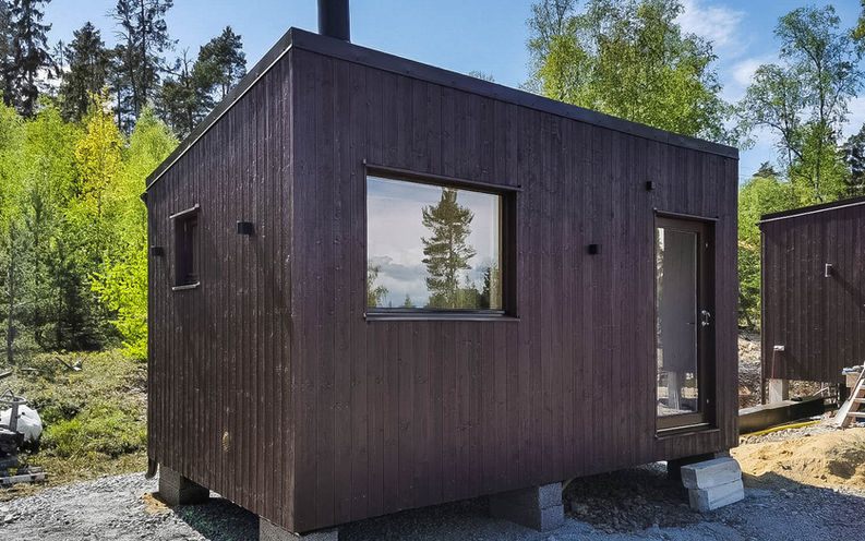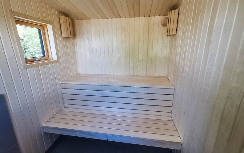48m² holztafelhaus mit sauna und aufenthaltsraum.